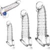 3 Sizes Textured Penis Sleeve with Cock Ring – Clear Reusable Cock Sleeve Penis Extender with Studded Stimulation for Added Length & Girth, Stable Fit Stays in Place, Sex Toys for Men & Couples