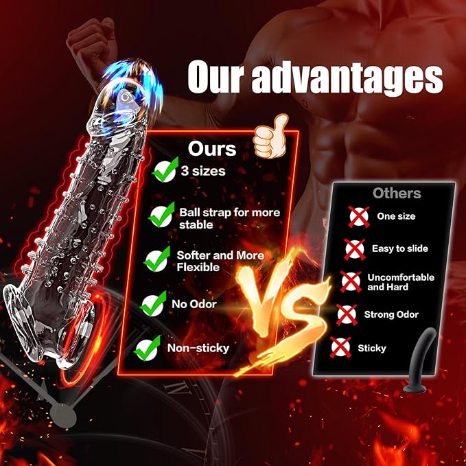 - 【3 Sizes So You Can Choose What Truly Fits You】 Every body is different — and finding a sleeve that truly fits shouldn’t feel like guessing. This set includes 3 textured penis sleeves (7.1″, 8.3″, 8.8″), all with the same soft bumps but different lengths and diameters, so you can match your real shape comfortably. No more “too loose,” no more “too tight.” Finally, options that feel natural, secure, and made for you — not just “one size for everyone.”