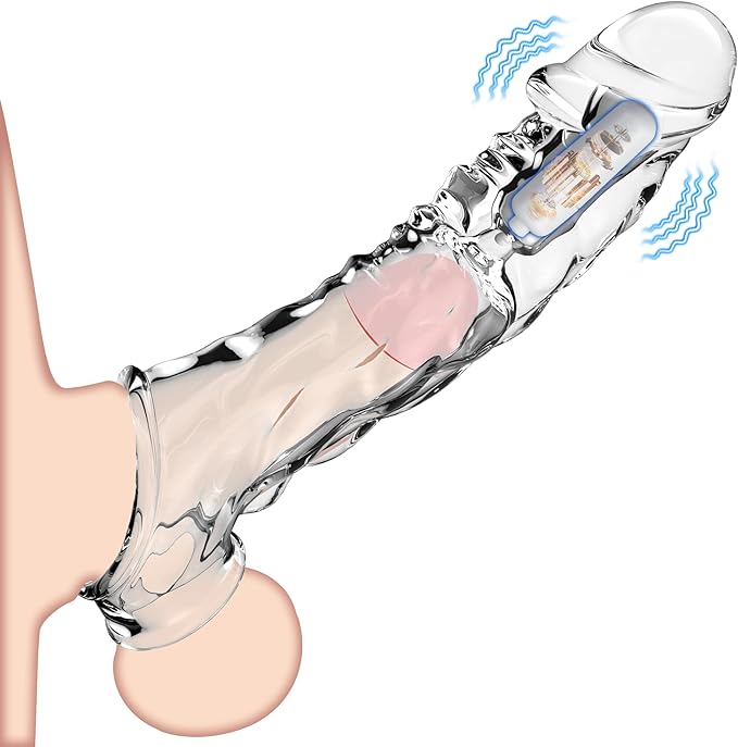 Reusable Penis Sleeve with Vibrator Penis Ring,3.6 inch Clear Penis Sleeve Cock Ring Extender Ultra-Soft Penis Enlarger for Couples Vibrating Dildo for Cock Enlarger Sex Toys for Men