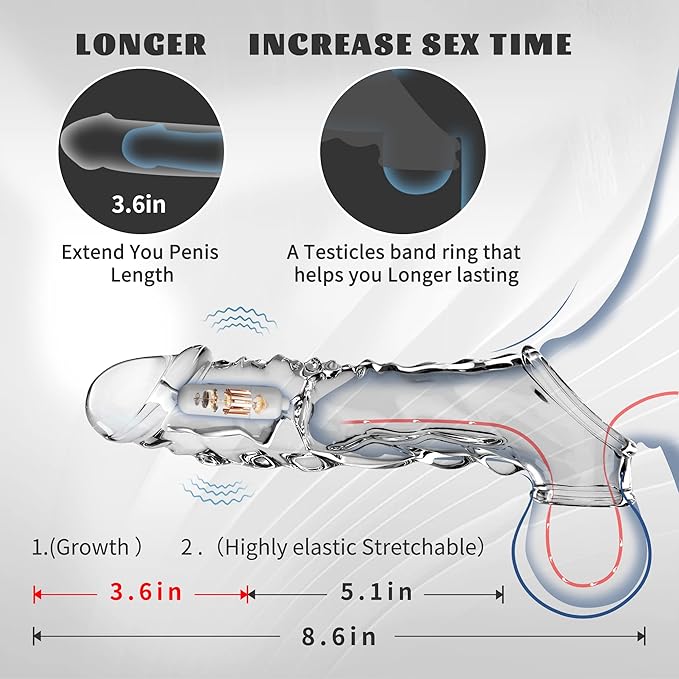 - 【Soft and flexible material】 This penis sleeve is made of TPE material, which penis extender to 3.6in. It is non-toxic, odorless and elastic, can lightly fit your skin, has outstanding tear resistance and elasticity, soft, suitable for all sizes, let you feel comfortable when playing with your partner, reusable, easy to clean, safe and reliable.