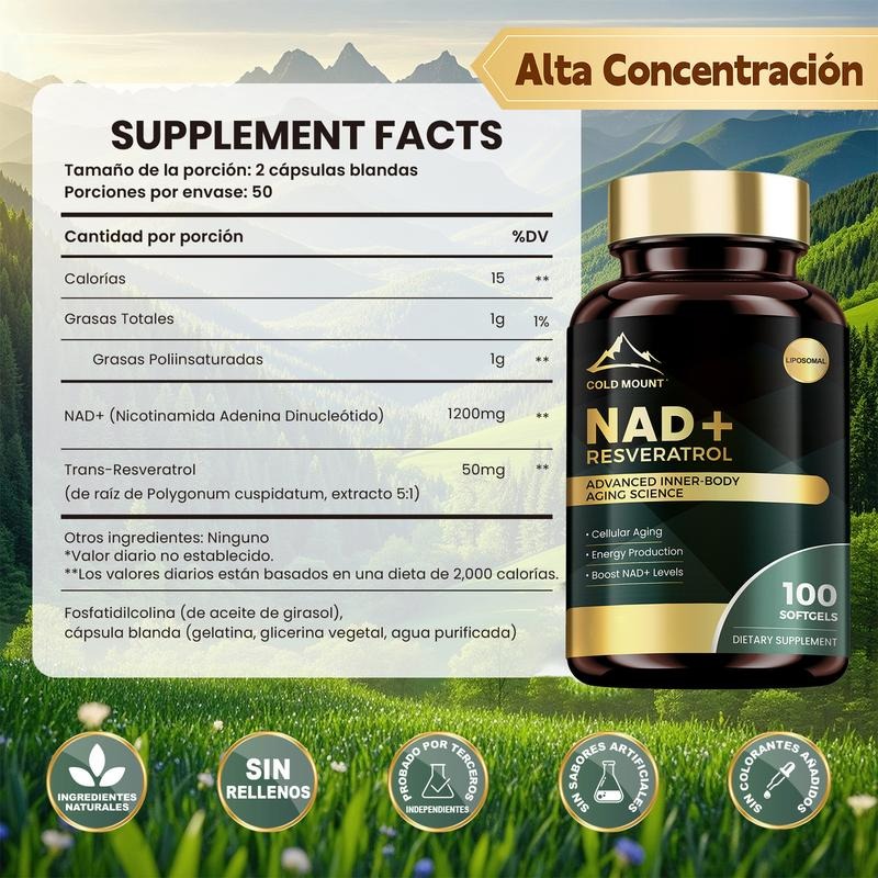 - NAD Trans-Resveratrol: Per serving contains 1200mg liposomal NAD+ and 50mg Trans-Resveratrol, working together to maximize anti-aging benefits. Resveratrol helps reduce free radical damage and enhances the antioxidant effects of NAD+, promoting younger-looking skin and healthier cells.