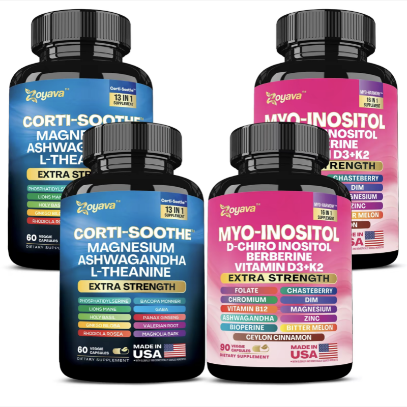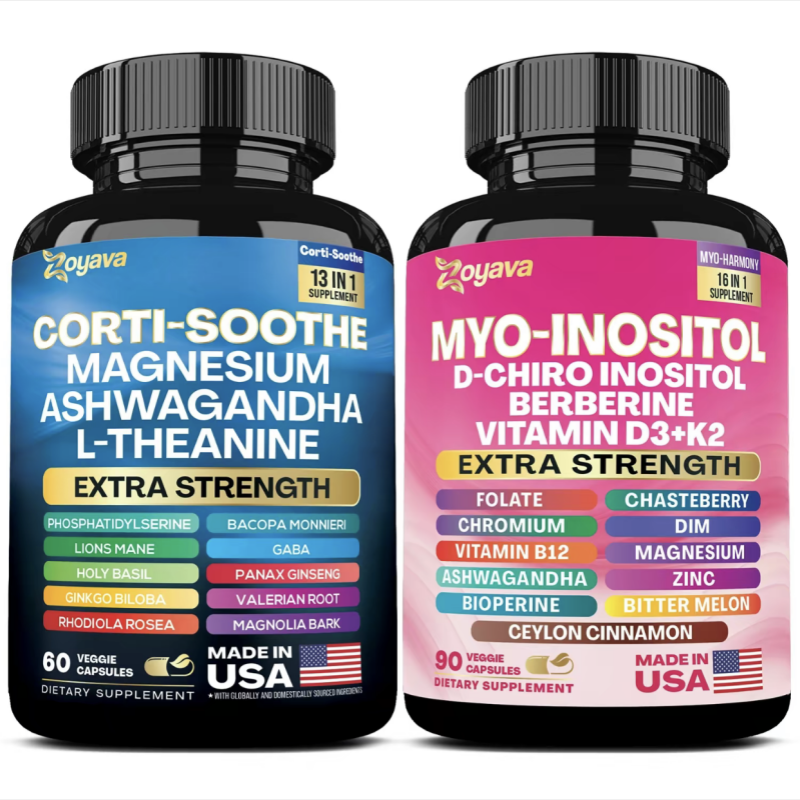 Zoyava Corti-Soothe Cortisol Supplement Magnesium Glycinate 200mg L-Theanine 150mg Ashwagandha 150mg Phosphatidylserine Cortisol Manager Lions Mane Ginkgo Biloba Bacopa Monnieri Valerian Root 60 Caps